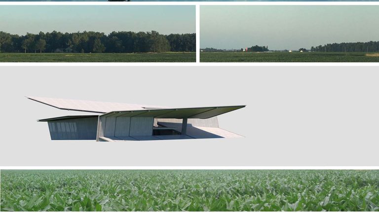 Part of the reason for the constant changes to the illustrations was that I had some ideas in my head of the sort of environment that I wanted to portray. After visiting Ohio and spending some time driving through the backroads and seeing the landscape, there were some specific feelings and atmosphere that I wanted to get right. I struggled to strike the right balance and kept tweaking and editing to match what I saw in my head. I also wanted to represent the changing landscape via the farming season and how the planting, growing, and harvesting of the crops alter how the site is experienced. What started out as six images ended up as three as I abandoned some and ran out of time with others. The narrative of the farming season is somewhat lost now, though I may revisit this idea later.